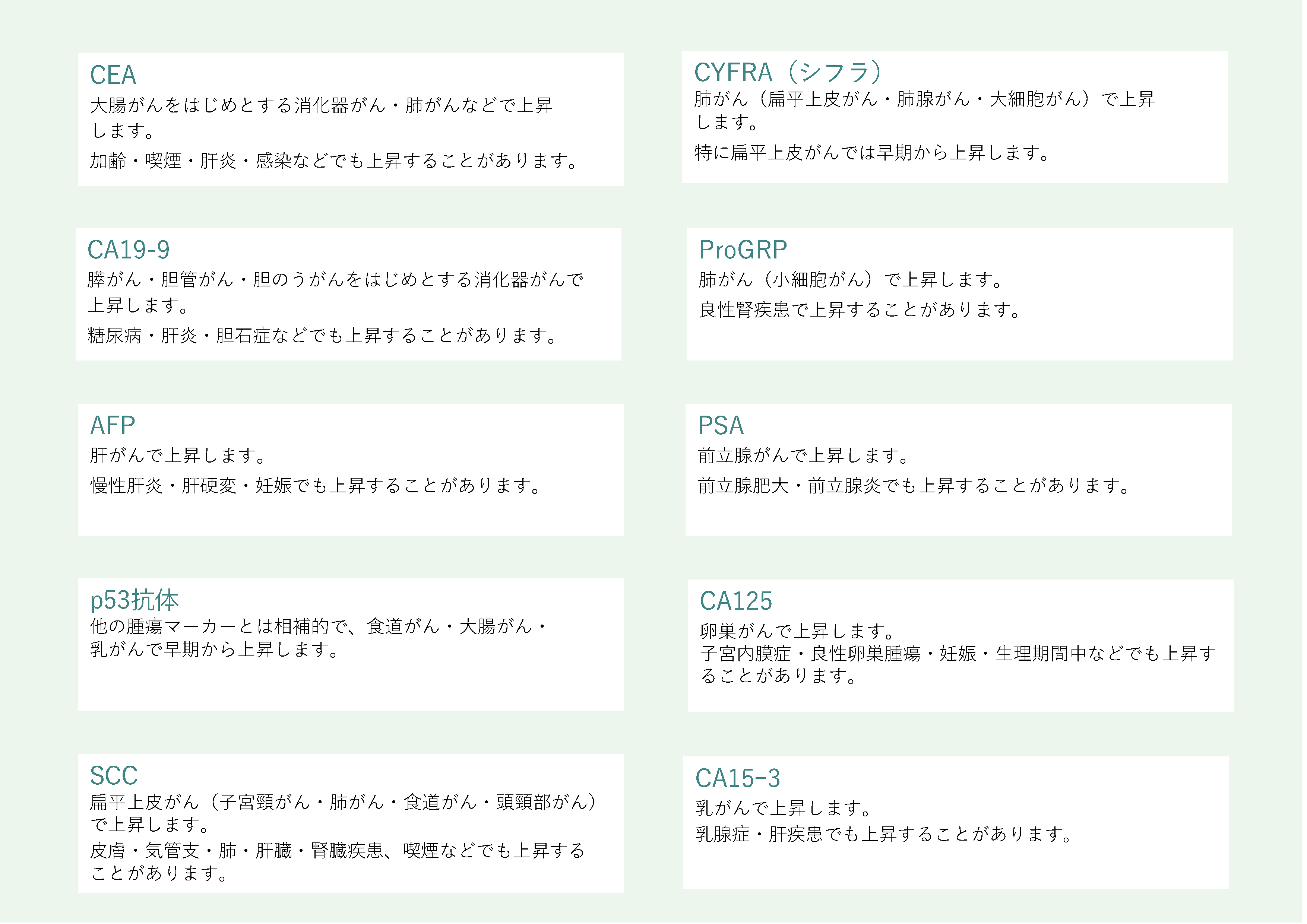 確定診断のためには、画像検査や内視鏡検査なども合わせて検査をし、総合的に判断する必要があります。腫瘍マーカーは、がんの可能性を調べる指標のひとつです。
