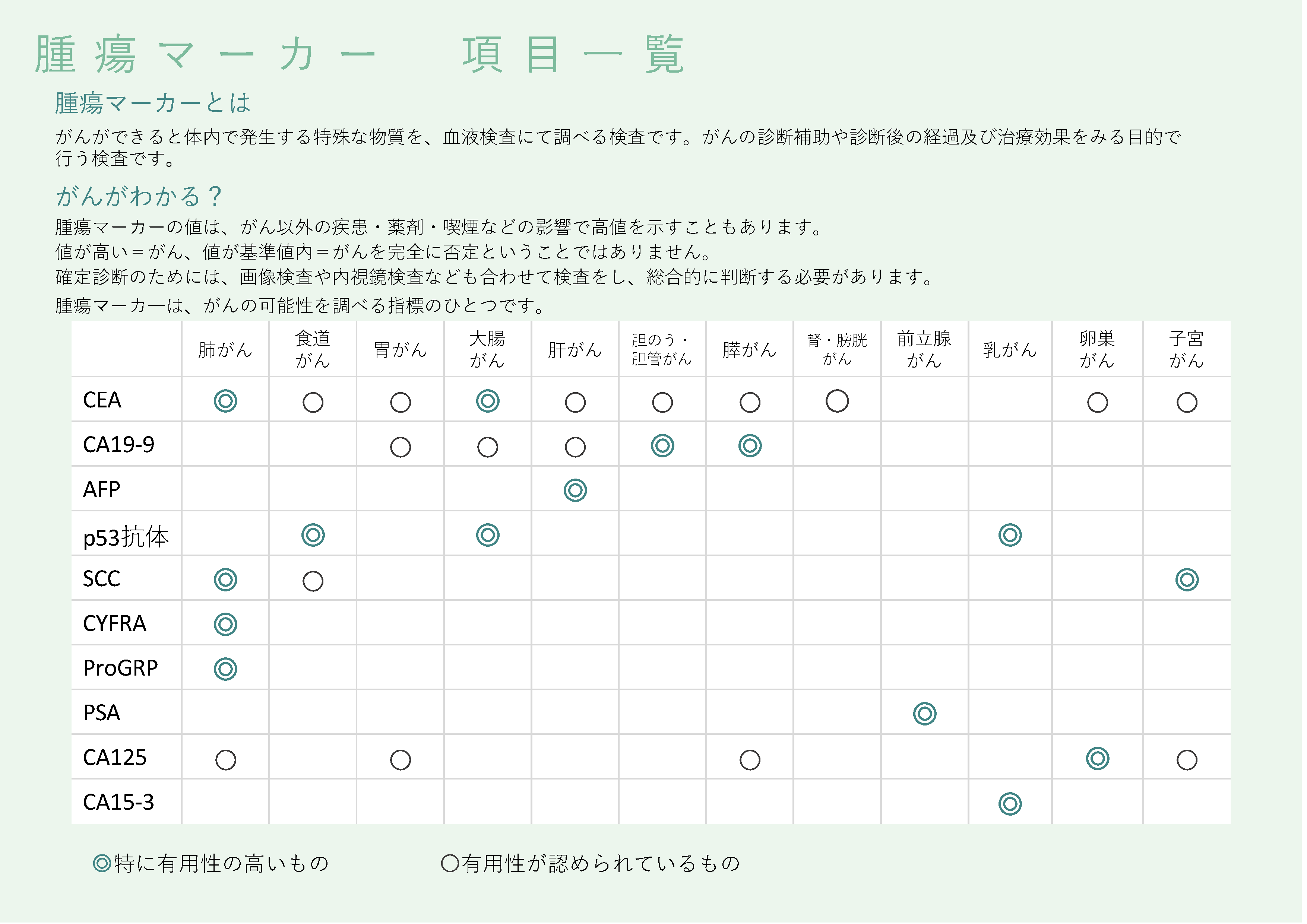確定診断のためには、画像検査や内視鏡検査なども合わせて検査をし、総合的に判断する必要があります。腫瘍マーカーは、がんの可能性を調べる指標のひとつです。
